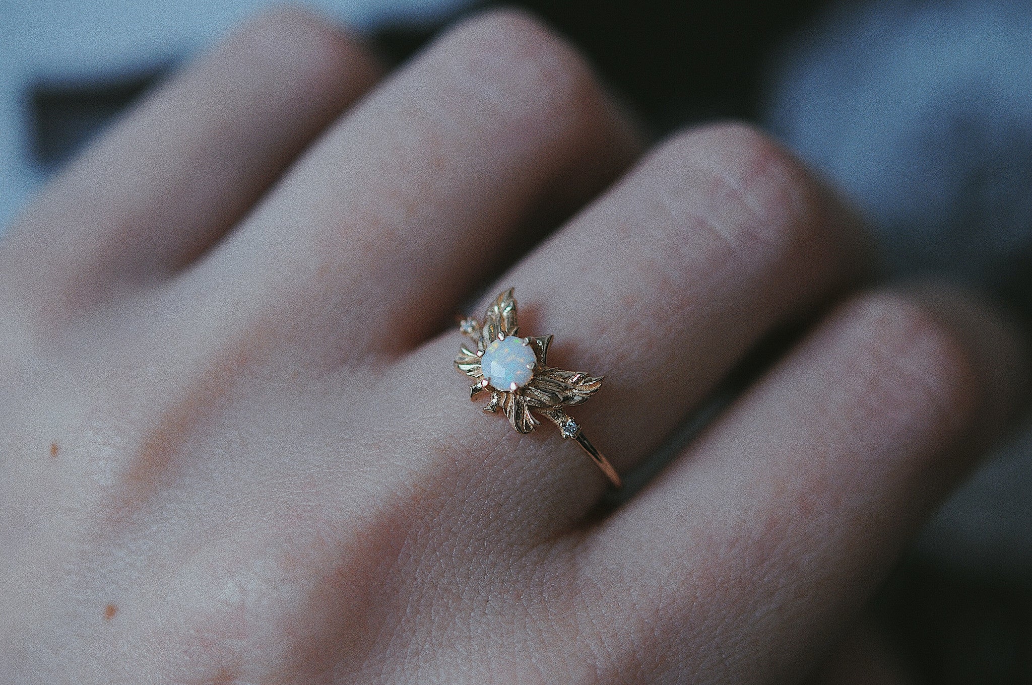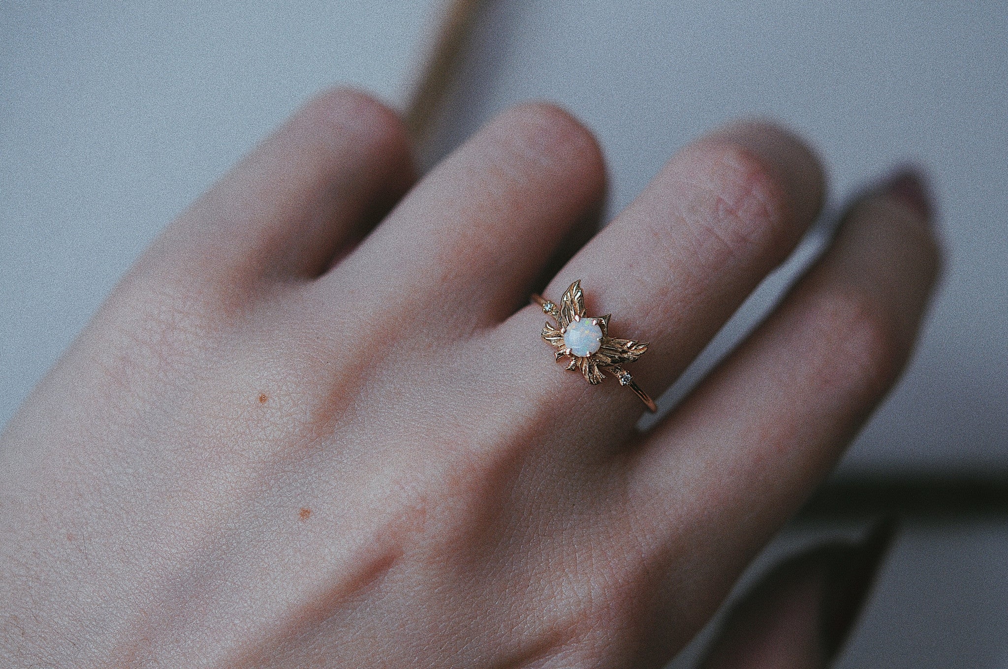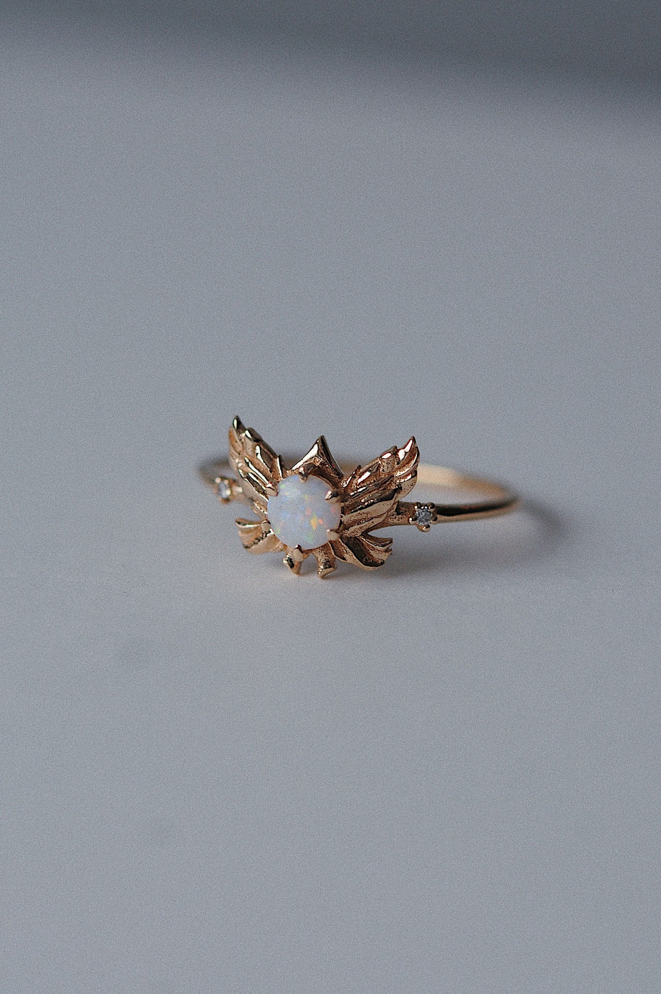 Featuring a beautiful 4mm Australian opal and 2 twinkling diamonds on a 1.2mm solid gold band.