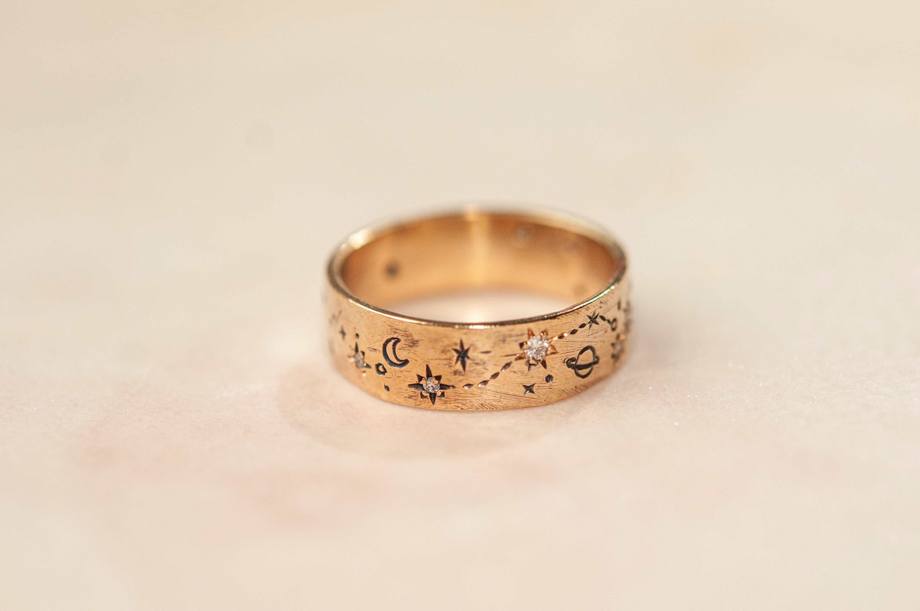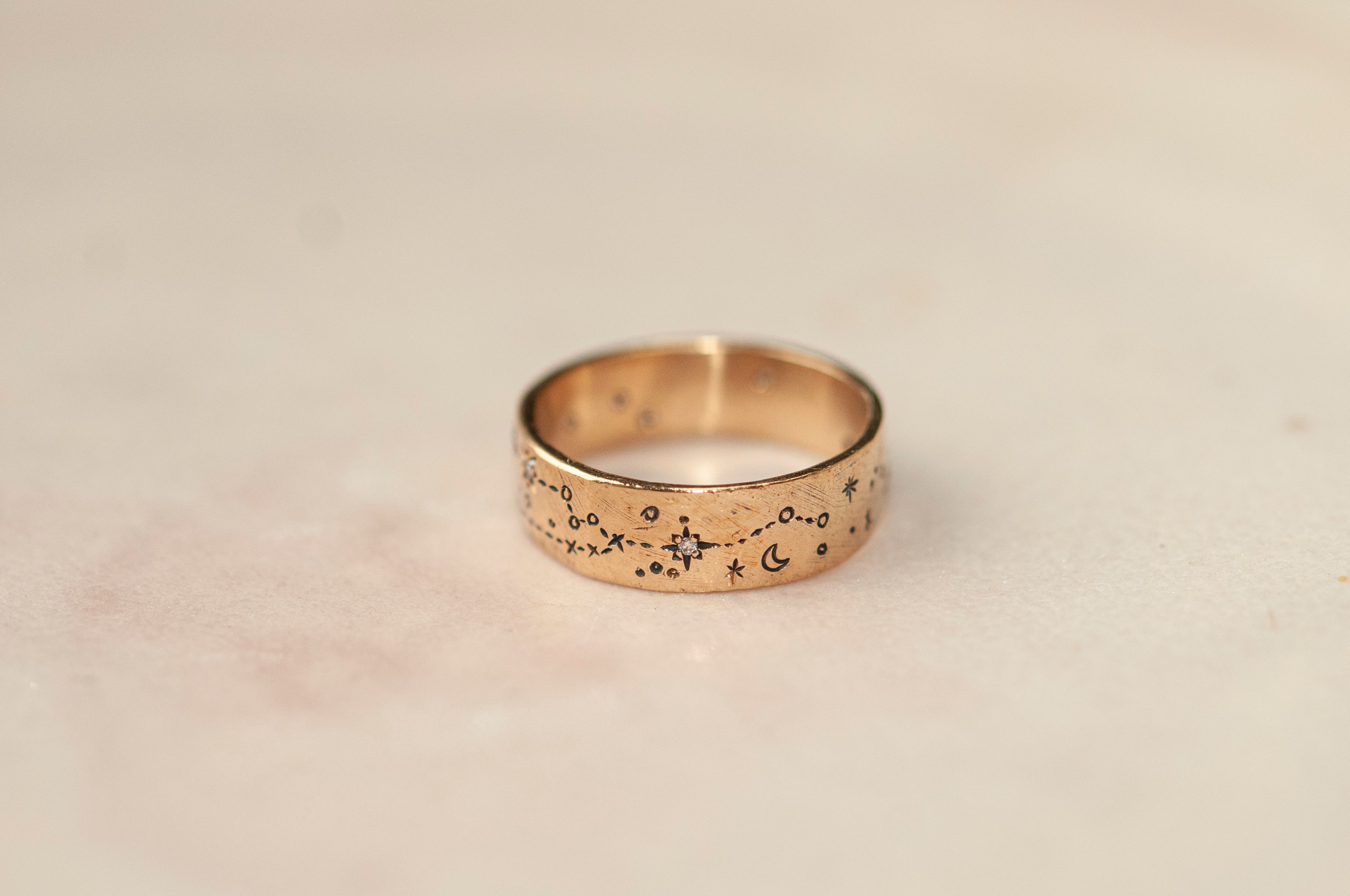 At checkout, please note the two constellations you would like hand-engraved into the ring. Kindly note that each ring is unique as they are each carved from wax and engraved by hand especially for you, so each ring may differ from the last.