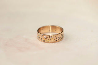 -tu es mon soleil, ma lune et toutes mes étoilesÉmu par la citation enchanteresse de E. E. Cummings "tu es mon soleil, ma lune et toutes mes étoiles...” nous l'avons écrit à l'intérieur de chaque boîte Sofia Zakia. Maintenant, le sentiment tendre est incarné sous la forme d'un anneau reliant tous ces corps astraux ensemble en un morceau de poésie portable.
