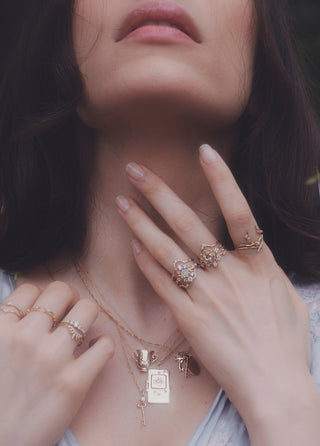 Sofia strives to join the quiet intimacy and elegance of jewelry into communion with the magic of poetry: heirloom objects that act as mirrors to love, pulling threads of inspiration from myth, literature, art, and memory, both new and old; universal and personal.