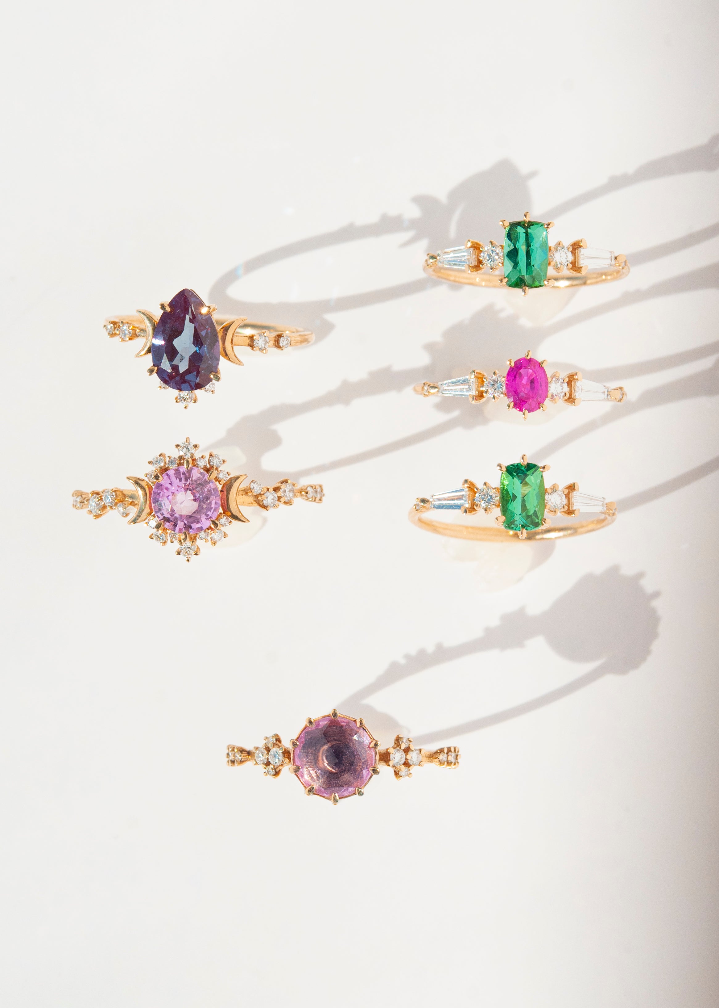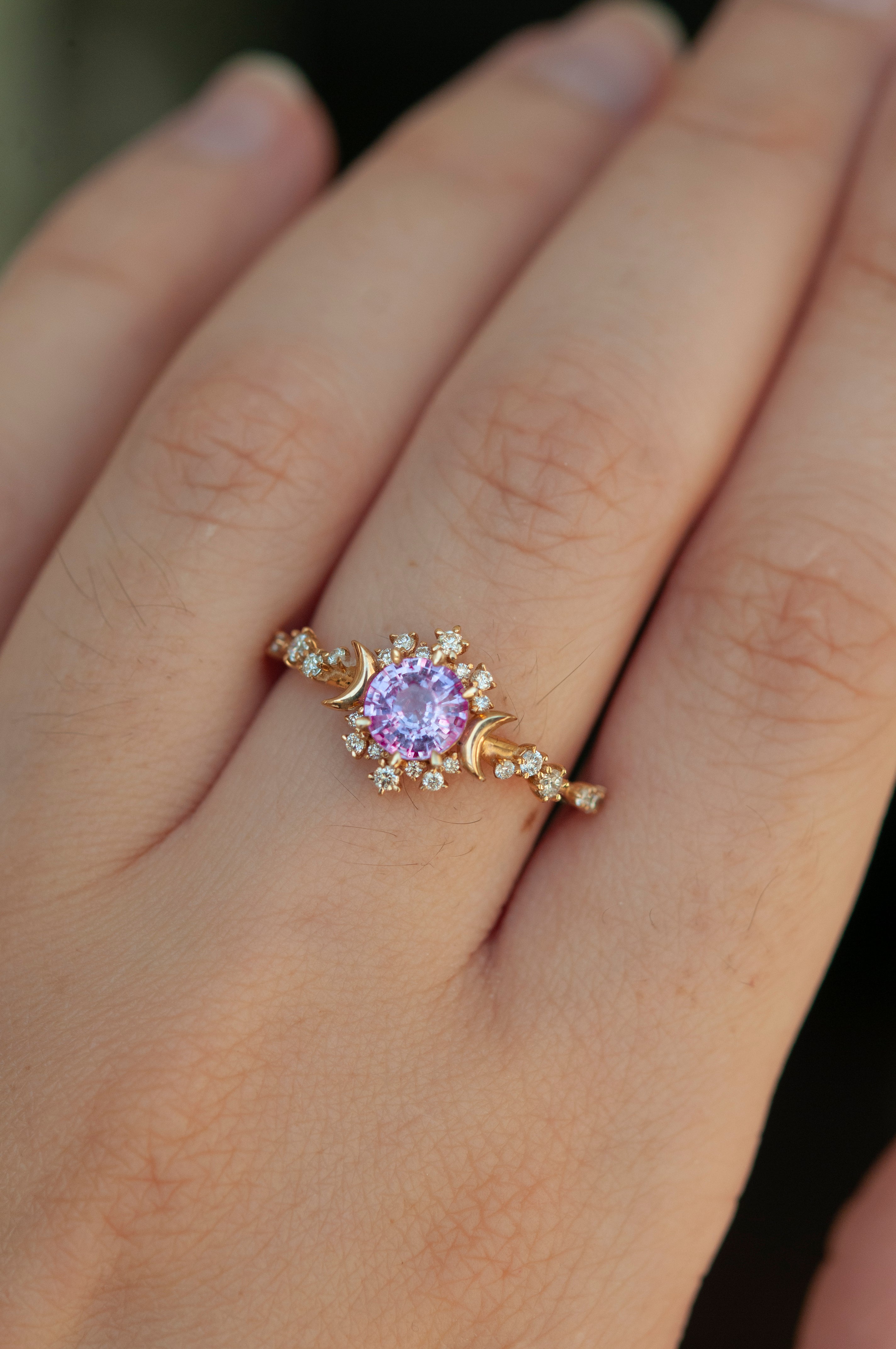 A dazzling, pink sapphire, like light scattered across some distant celestial body in a sea of stars.