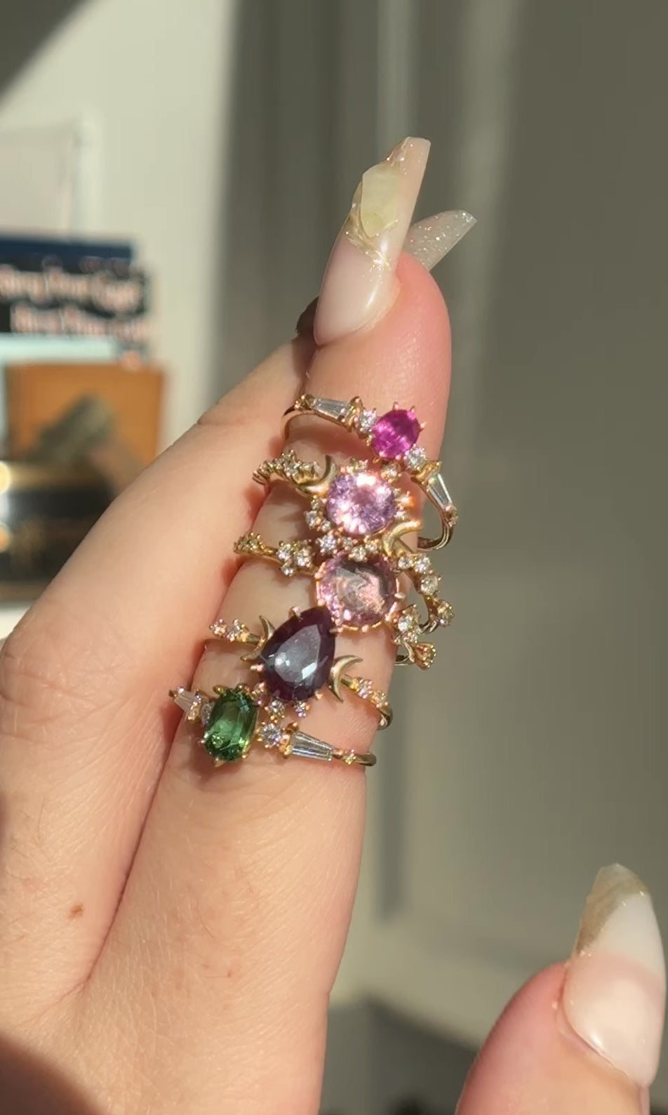 Sofia strives to join the quiet intimacy and elegance of jewelry into communion with the magic of poetry: heirloom objects that act as mirrors to love, pulling threads of inspiration from myth, literature, art, and memory, both new and old; universal and personal.