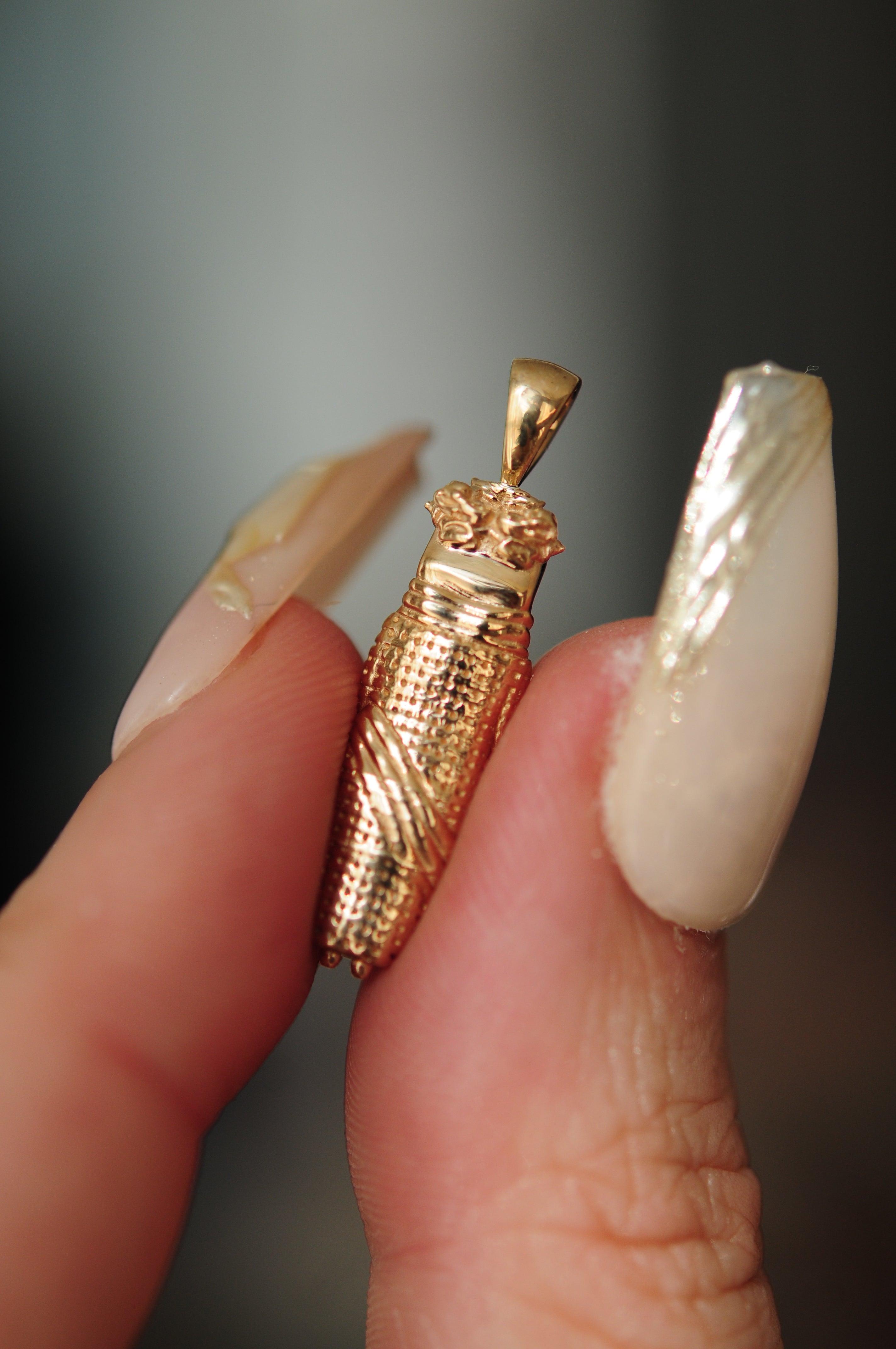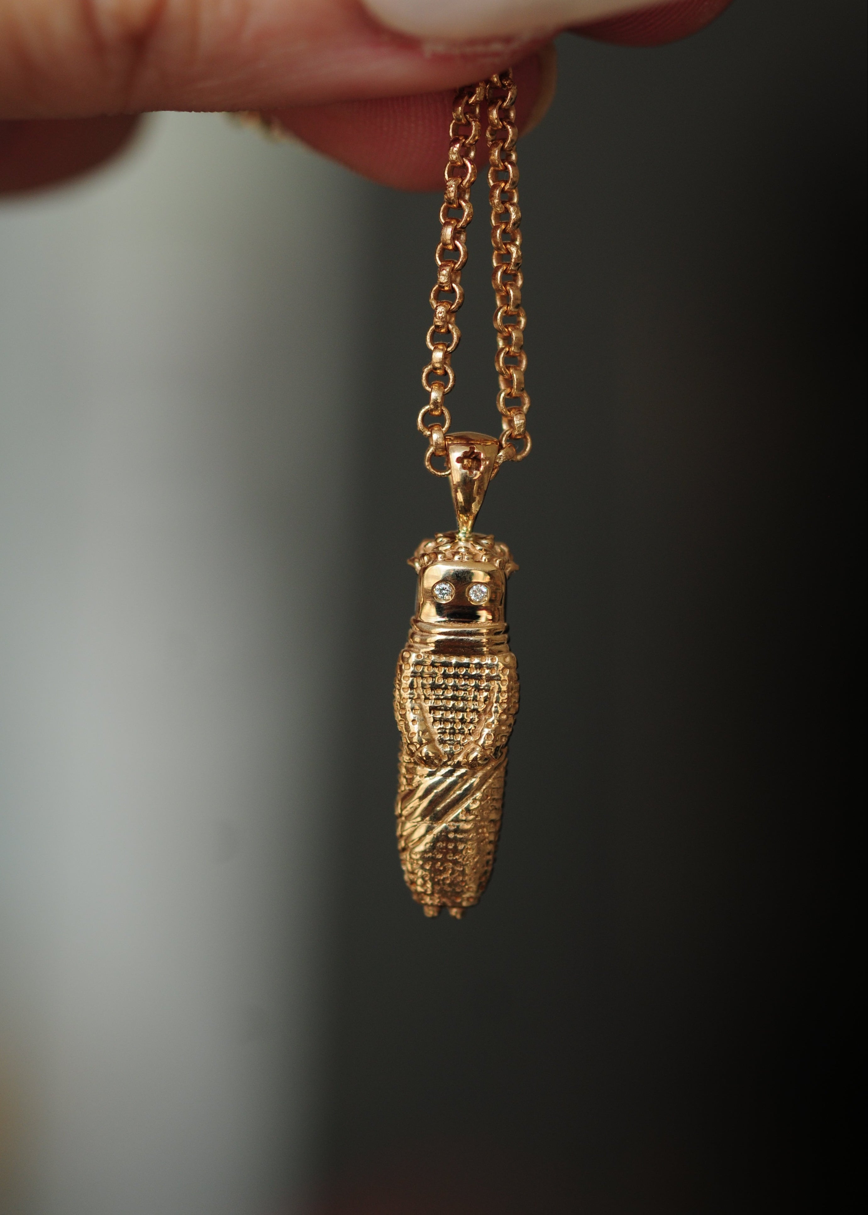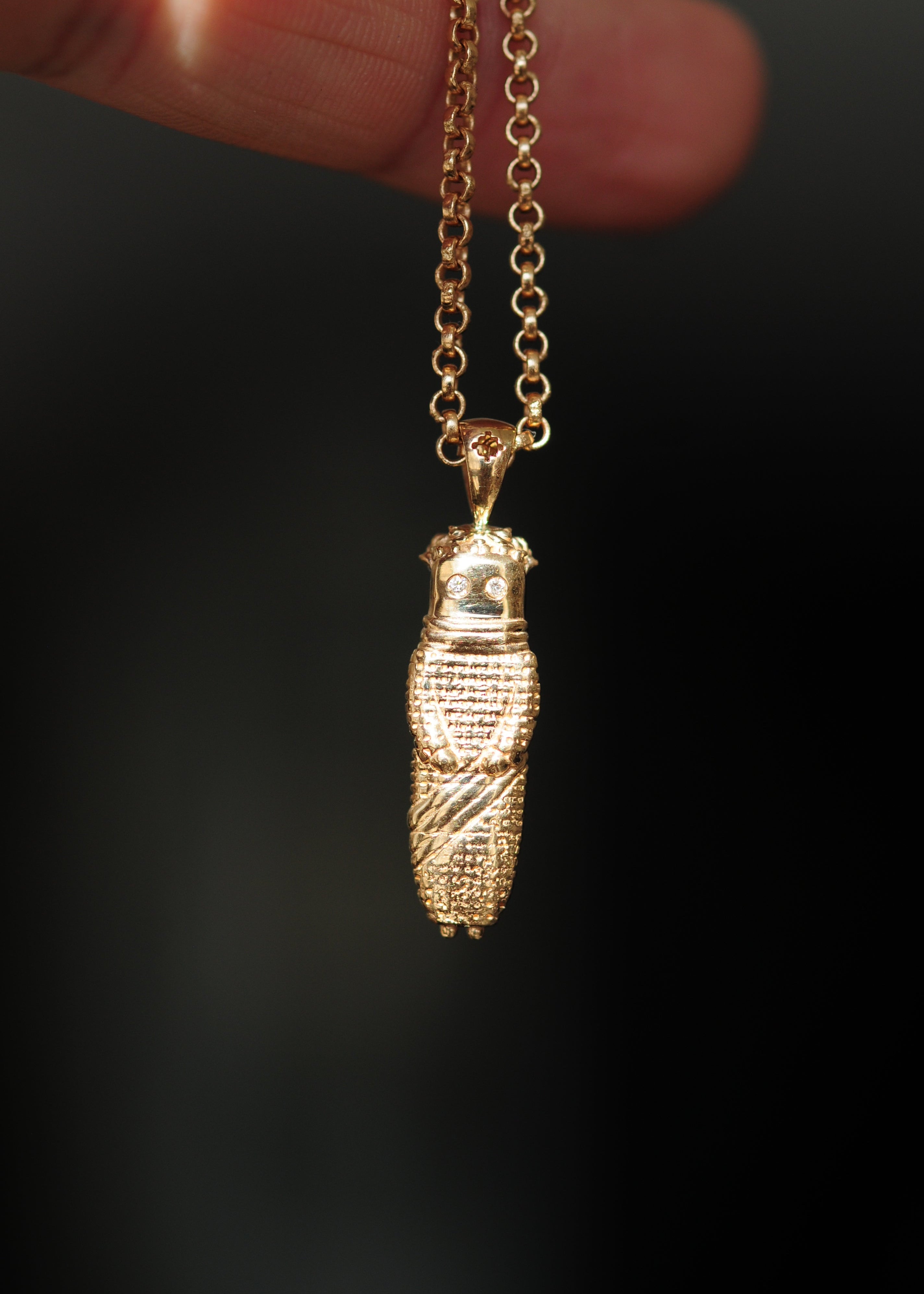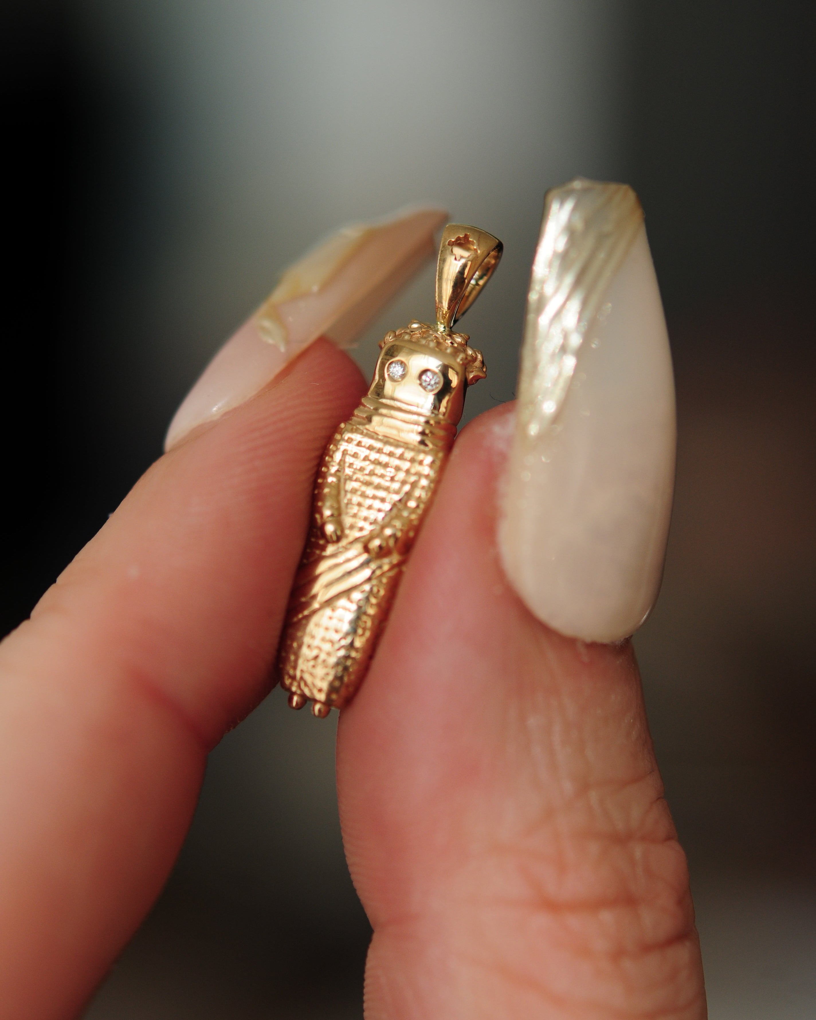 0.8mm diamond eyes, detailed bail, ~5.03g weight